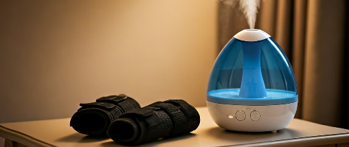 적절한 실내 습도 유지가 필요하다. 건조한 환경은 관절을 더욱 뻣뻣하게 만들 수 있으므로, 가습기를 사용하거나 젖은 수건을 널어두어 적정 습도를 유지한다.