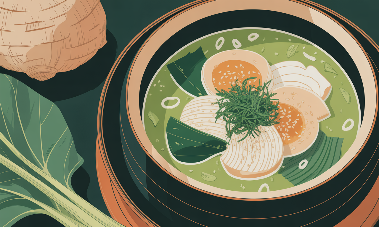 들깨가루와 함께 끓인 토란국은 고소하면서도 구수한 맛이 일품이다. 된장이나 멸치육수를 베이스로 하면 깊은 맛을 낼 수 있다. 면역 강화 효과를 높이고 싶다면 들깨가루를 넉넉히 넣는 것이 좋다.